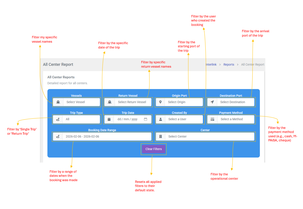 - Vessels: Filter by specific vessel names.