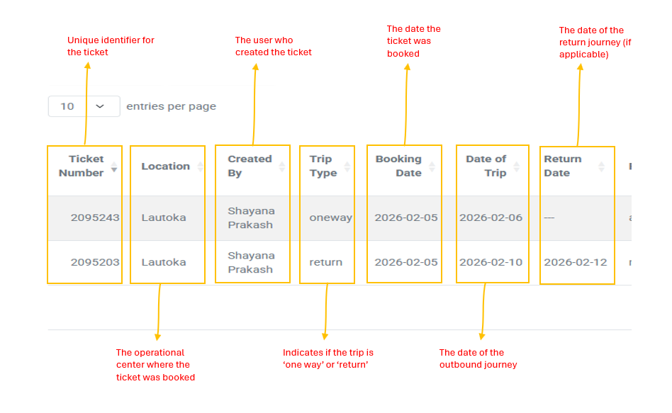 - Location: The operational center where the ticket was booked.