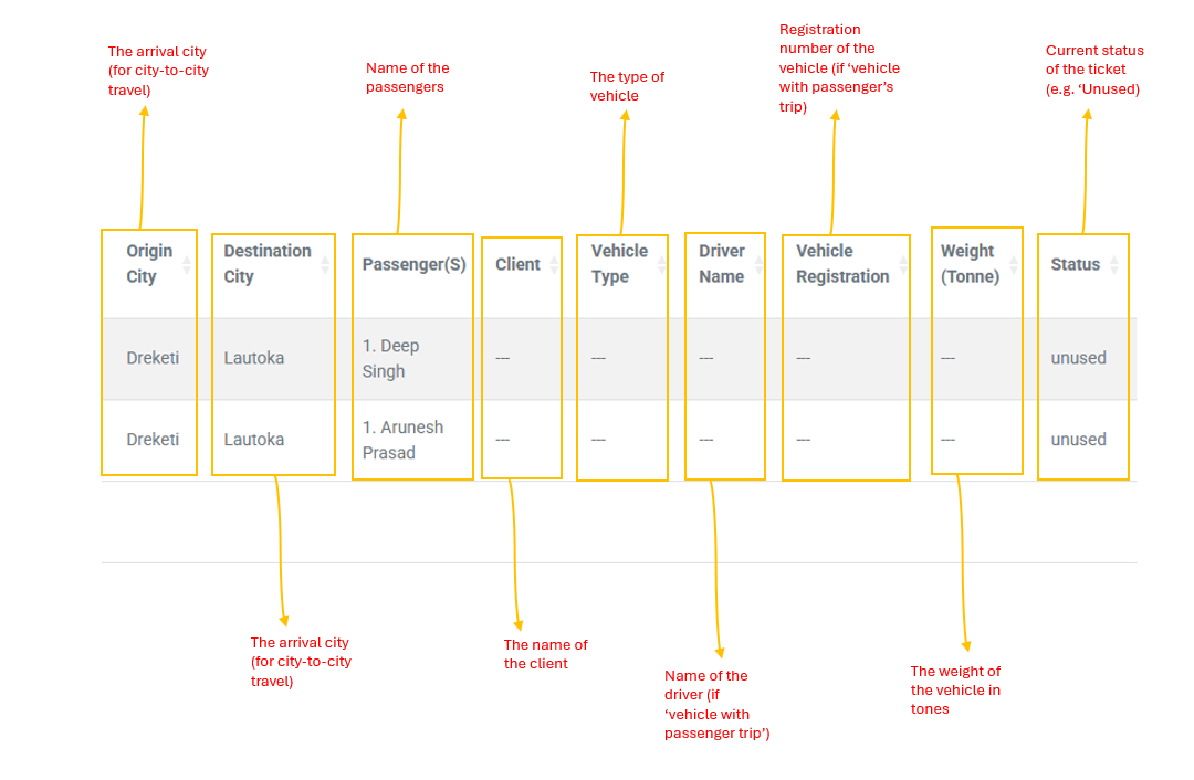 - Driver Name: Name of the driver (if 'Vehicle with Passengers' trip).