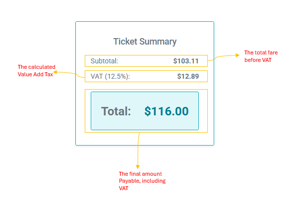 - Subtotal: The total fare before VAT.