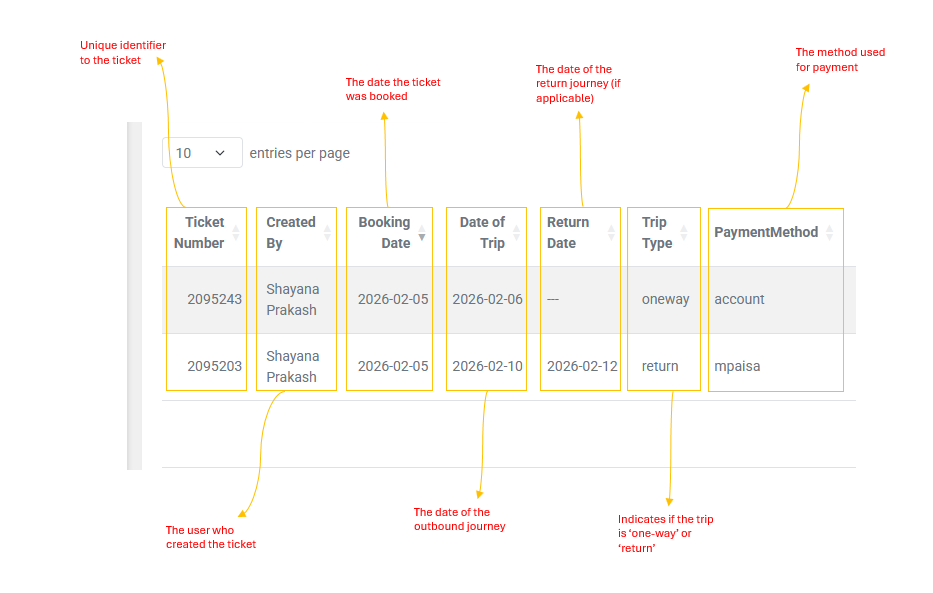 - Trip Type: Filter by 'Single Trip' or 'Return Trip'.