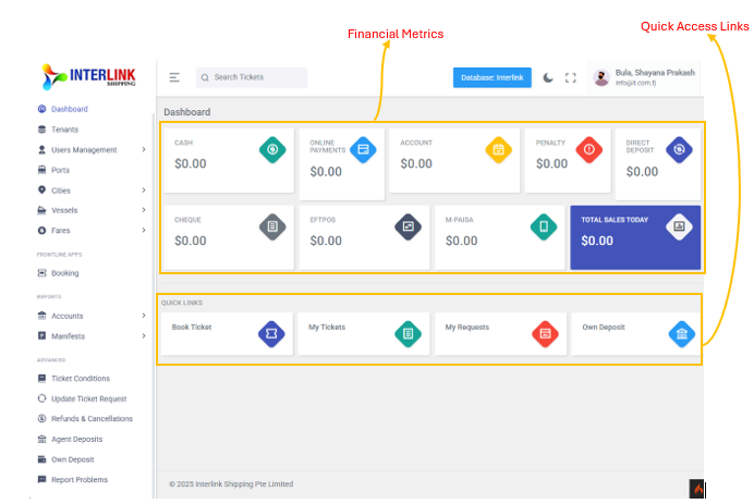 - Total Sales Today: The cumulative sum of all sales transactions for the current day. This card is highlighted in primary color.