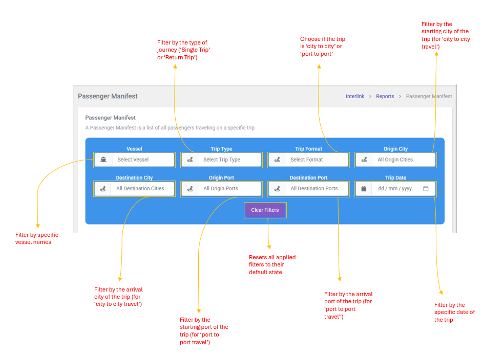 - Destination Port: Filter by the arrival port of the trip (for port-to-port travel).