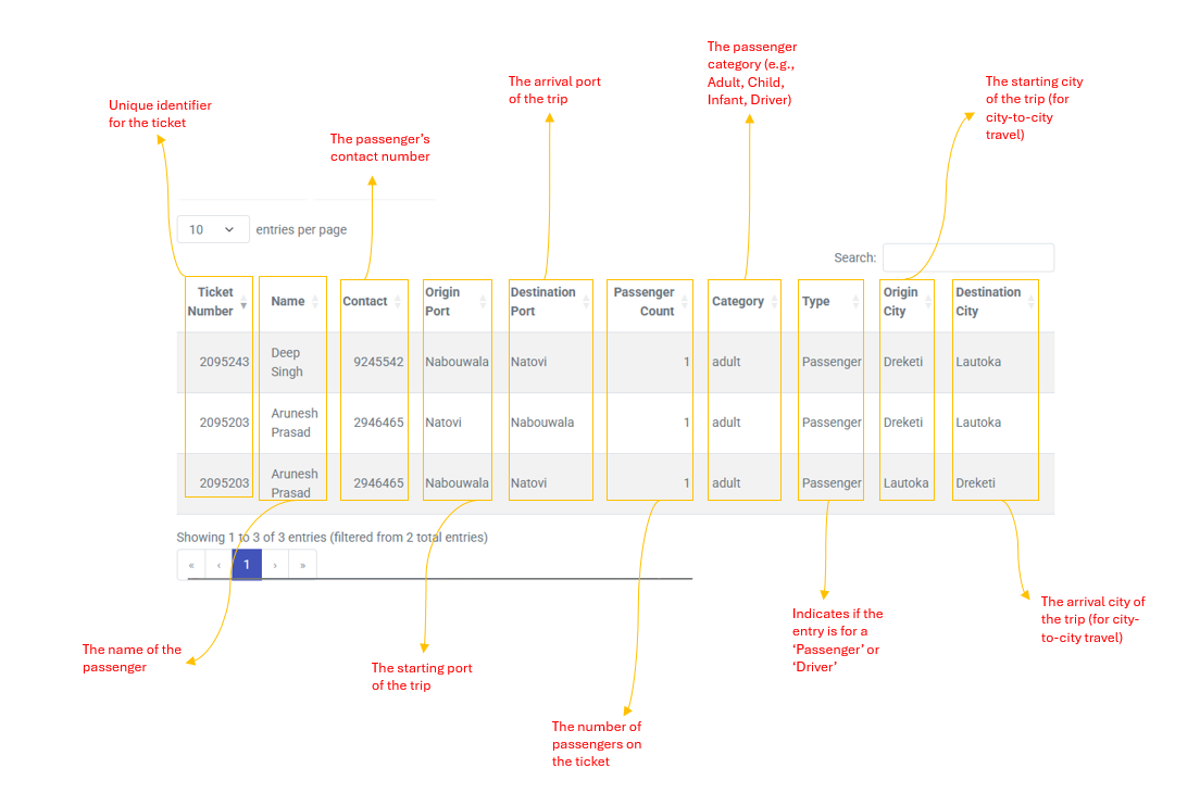 - Type: Indicates if the entry is for a 'Passenger' or 'Driver'.