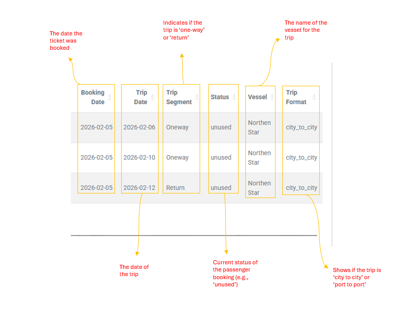 - Status: Current status of the passenger booking (e.g., 'unused').