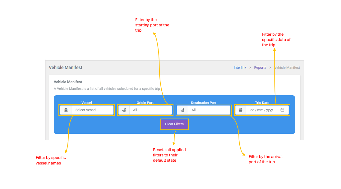 - Destination Port: Filter by the arrival port of the trip.