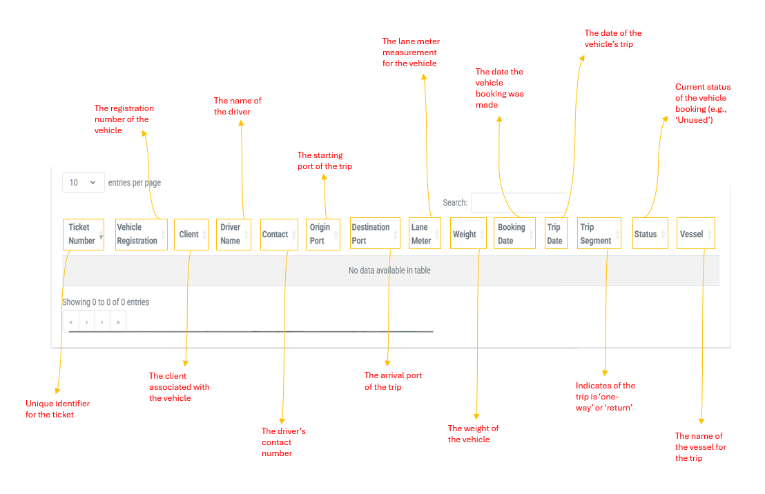 - Vessel: The name of the vessel for the trip.