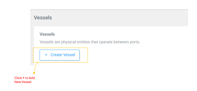 The Vessels section contains two sub-pages for managing vessel records and their departure/arrival schedules.